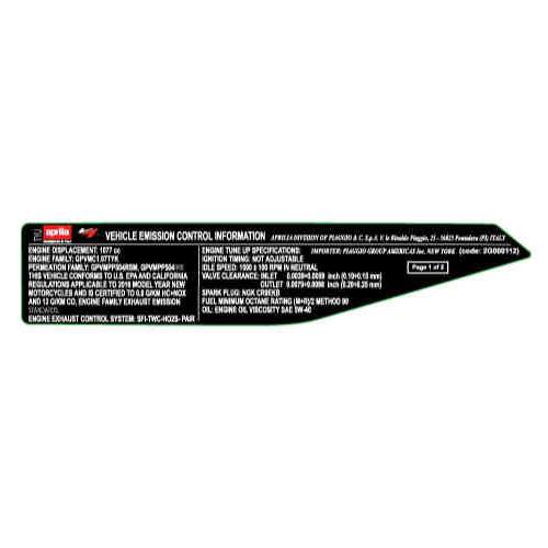 Plaquettes et decalcomanies Aprilia APRILIA-MOTORCYCLES 1100 TUONO 2016  Tuono V4 Factory